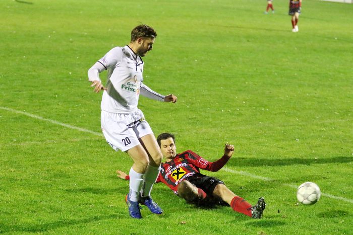 Gnas-Verteidiger Stefan Klenner (rechts) im Duell mit Domagoj Beslic.