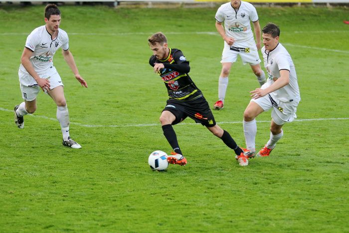 David Schnaderbeck, der spätere Doppeltorschütze (am Ball), links Christian Schadler, rechts Daniel Luttenberger-Haas.
