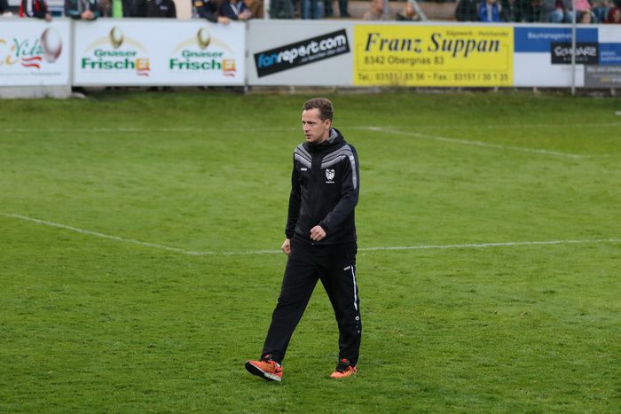 Gnas-Trainer Marko Kovacevic schreitet zur Betreuerbank.