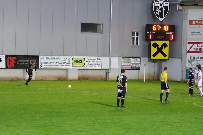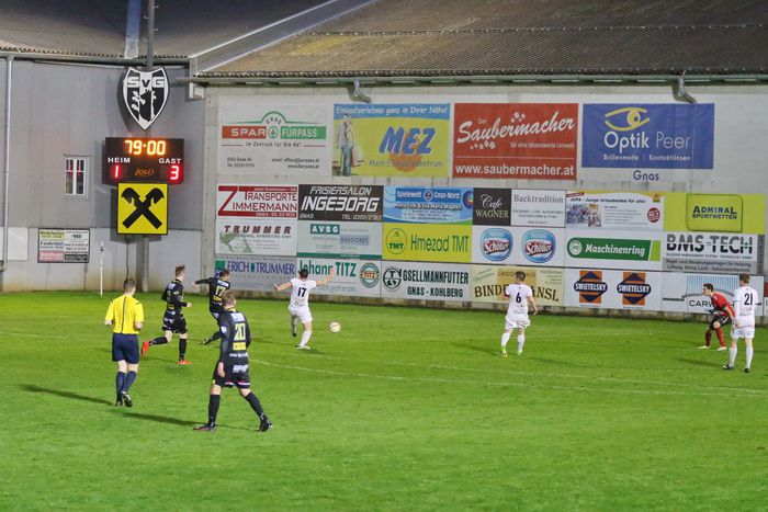 Gnas-Verteidiger Stefan Klenner musste in der 67. Minute nach einem Foulspiel mit der Ampelkarte das Feld verlassen. Den darauffolgenden Freistoß setzte Stefan Prattes an die Querlatte. Von der Innenseite der Latte sprang der Ball auf die Torlinie und aufs Feld zurück, die Gnaser konnten die Situation bereinigen. In der 73. Minute musste Gnas-Innenverteidiger Thomas Suppan nach einem Zusammenstoß mit Torhüter Krenn verletzungsbedingt ausgewechselt werden.