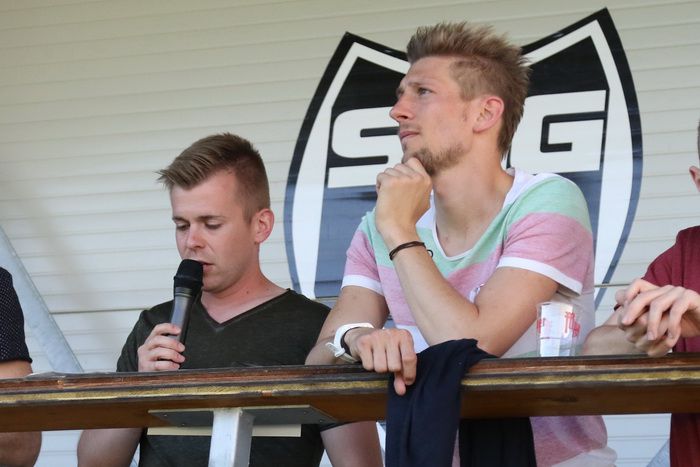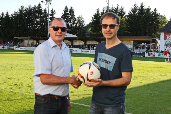 Platzsprecher Christoph Kagerbauer, daneben der frühere Kapitän Christoph Haas.