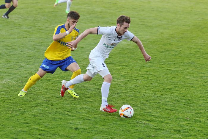 Haris Ribic (am Ball) passt zu Daniel Merl....