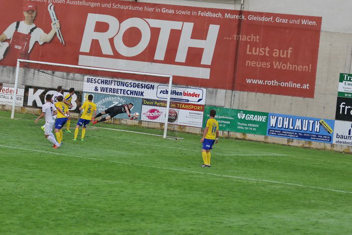 Auf der anderen Seite ging der Schuss eines Bruckers am langen Eck vorbei (68.) und in der 71. Minute konnte Gnas-Keeper Stocker einen weiteren Schuss ohne Mühe halten (71.).