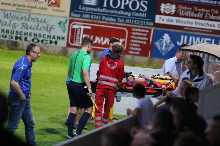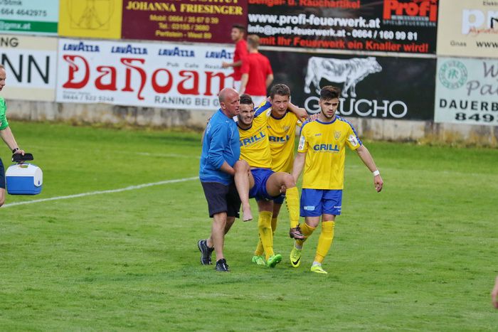 Gleich darauf verletzte sich der Brucker Haris Ribic nach einem Angriff am Knöchel - ein eigener Spieler (Christoph Trippl) stürzte unglücklich auf den Fuß von Ribic. Mit geschwollenem rechten Knöchel wurde Haris Ribic vom Feld gestützt und später mit der Rettung abtransportiert. Auf diesem Weg wünschen wir dem Brucker baldige Genesung.