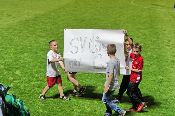 Gnaser Fans mit einem Plakat, SV Gnas gibt Gas..