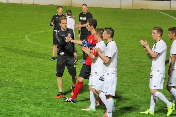 Gnas-Trainer Marko Kovacevic beglückwünscht dazu die Gnaser-...