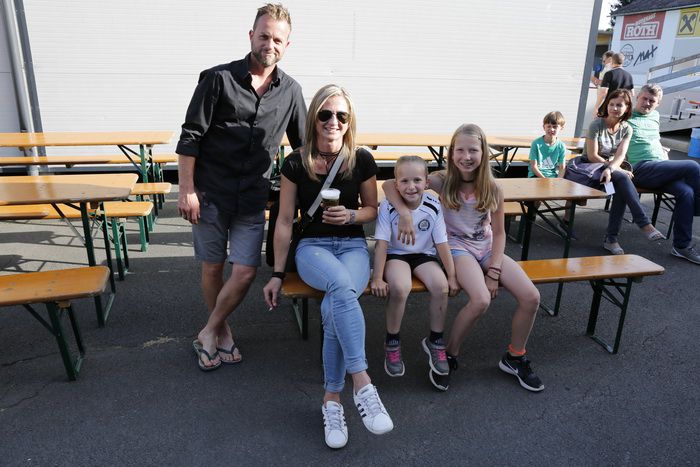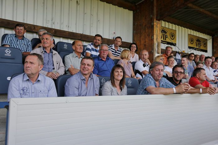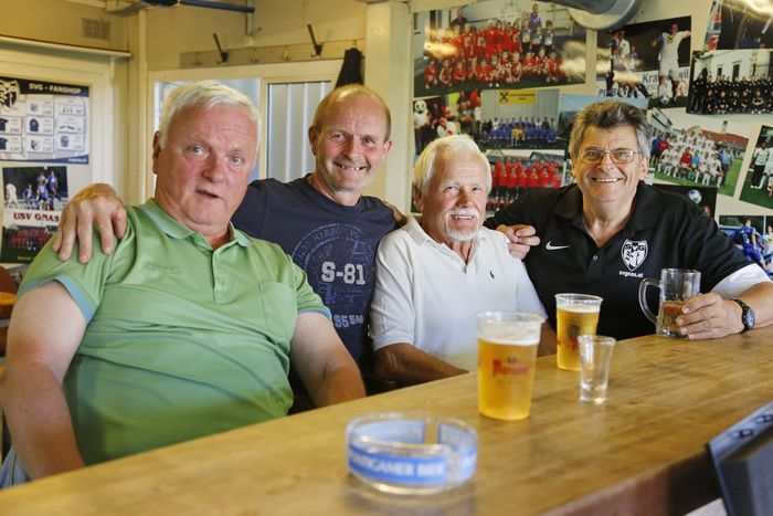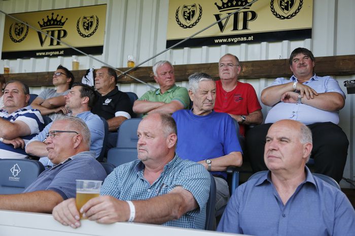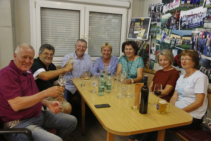 Eine gesellige Runde vor dem Spiel mit früheren Gnas-Spielern in der Blechkugel.
