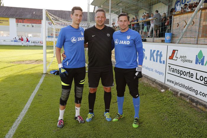 Gnas-Tormanntrainer Alexander Fetz (mitte) verabschiedete die Torhüter Philip Stocker (links) und Stefan Pfeiler.