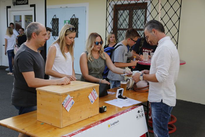 Vor dem Spiel werden noch Gewinnkarten verkauft.