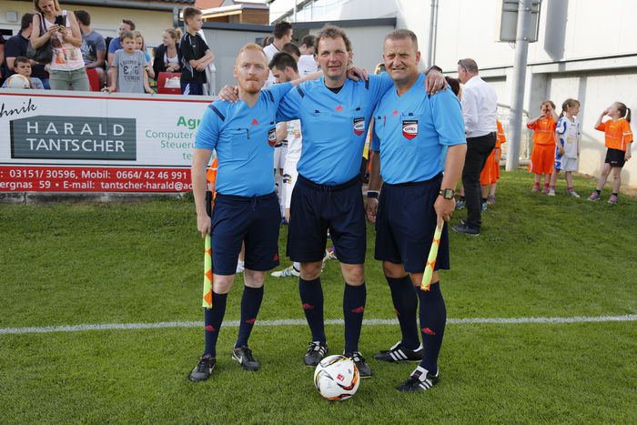 Für Schiedsrichter Alfred Kislick (mitte) war dies das letzte Spiel in der Landesliga. Links Ass. Christian Waissenbacher, rechts Ass. Günther Braunstein.