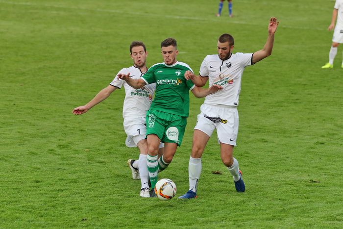 Gnas-Stürmer Oliver Fink (Nr.19) zieht ab..