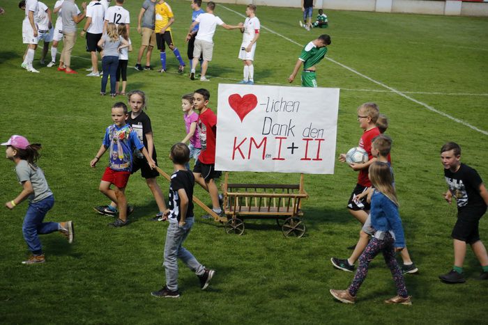 Die jungen Fans bedanken sich bei den Spielern der KM I und KM II.