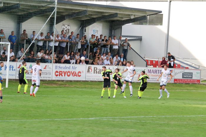 Der Kopfball von Stefan Klenner streicht über die Querlatte (78.).