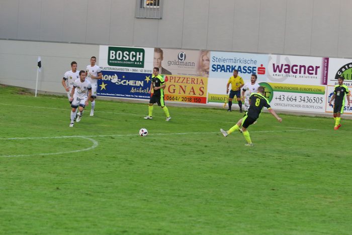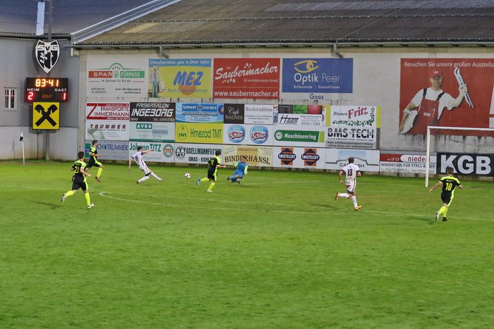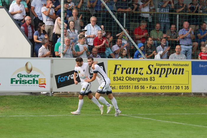 Einen weiten Outeinwurf von Matthias Schadler verlängerte Daniel Luttenberger-Haas mit dem Kopf, Alexander Hofer köpfelte das Leder zur Ecke (34.).Wenig später kamen die Gnaser über die linke Seite. Maxi Opferkuch passte zu Daniel Luttenberger-Haas, der Routinier gewann ein Pressballduell mit Torhüter Admir Peckovic und schob in der Folge die Kugel seelenruhig zum 2:0 ein (35.).
