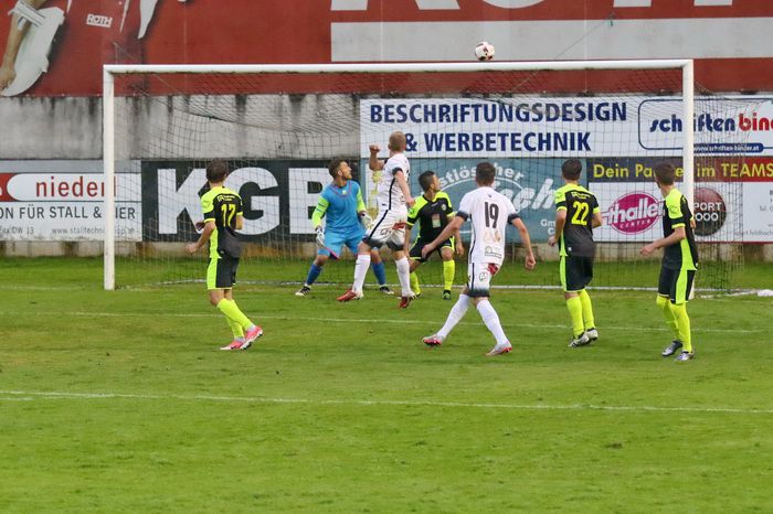 Nach einem Outeinwurf verlängerte Haas-Luttenberger per Kopf, Hofer (Nr.15) köpfelt zur Ecke (34.).