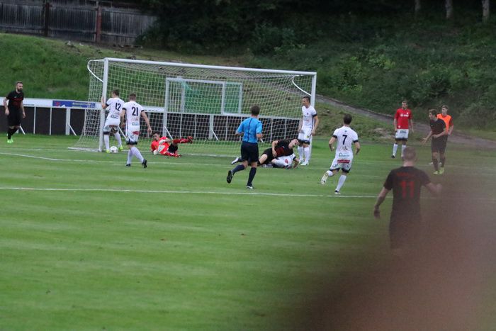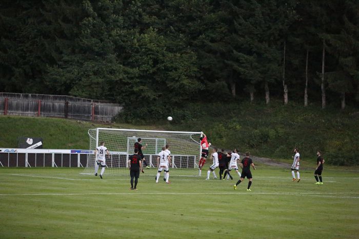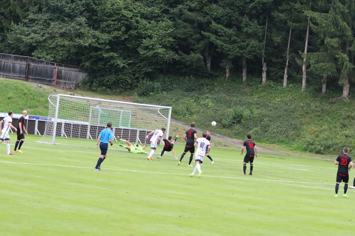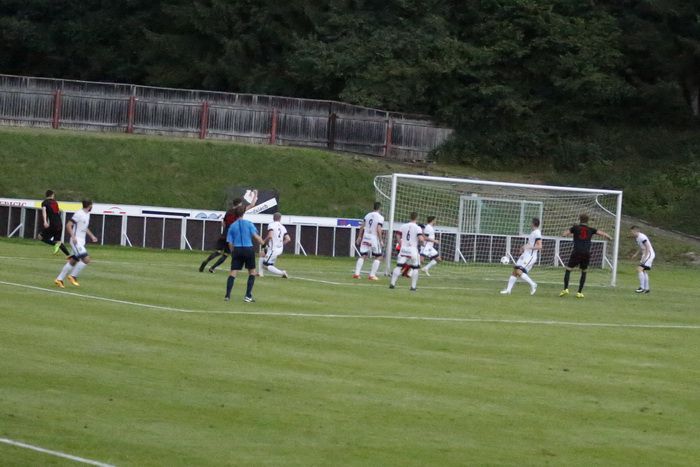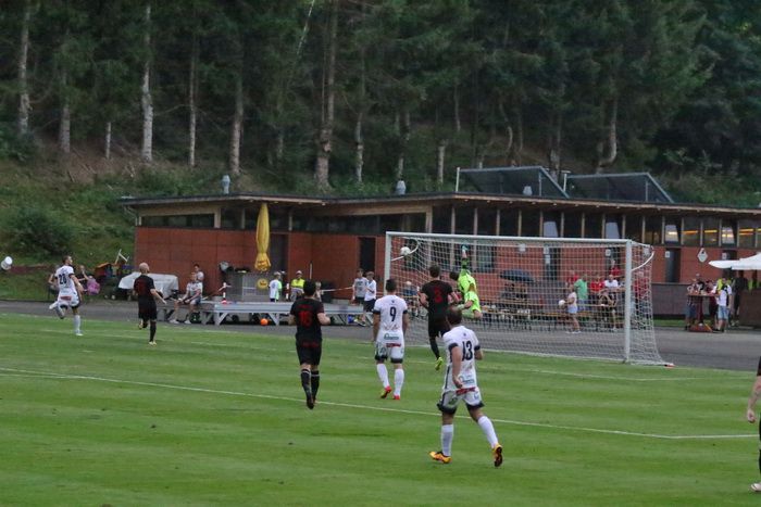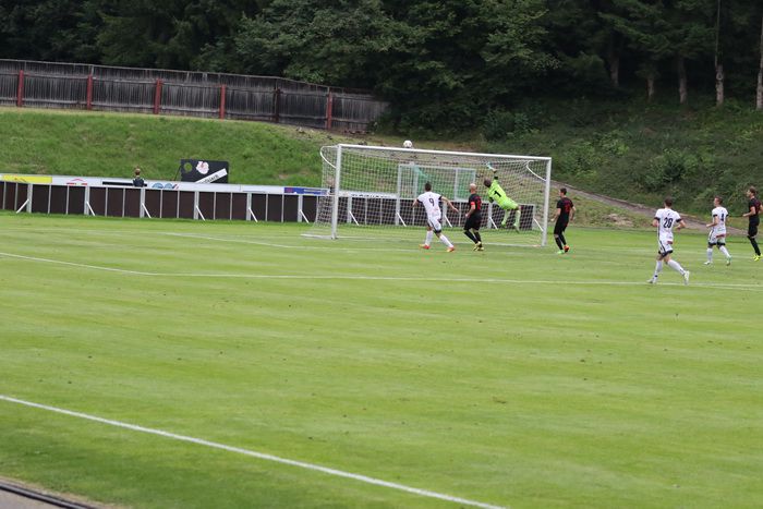 Nach einer Flanke von der linken Seite steigt Raphael Kniewallner hoch und köpfelt zum 2:1 ein (80.)...