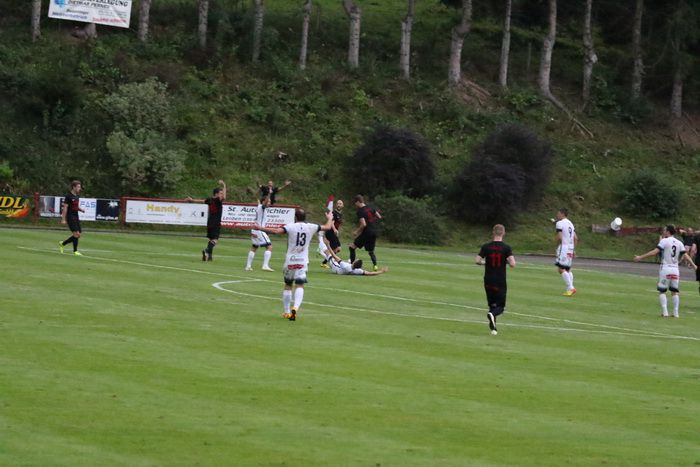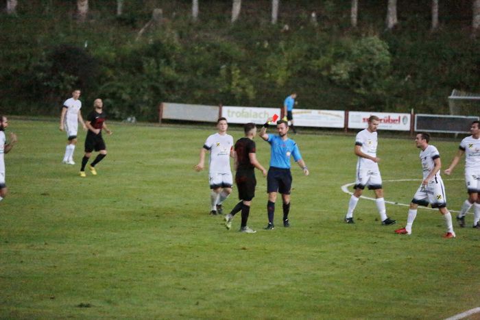 Der Trofaiacher Gjergj Shabani sieht nach Foul an Kniewallner (Torraub) die Rote Karte (85.)