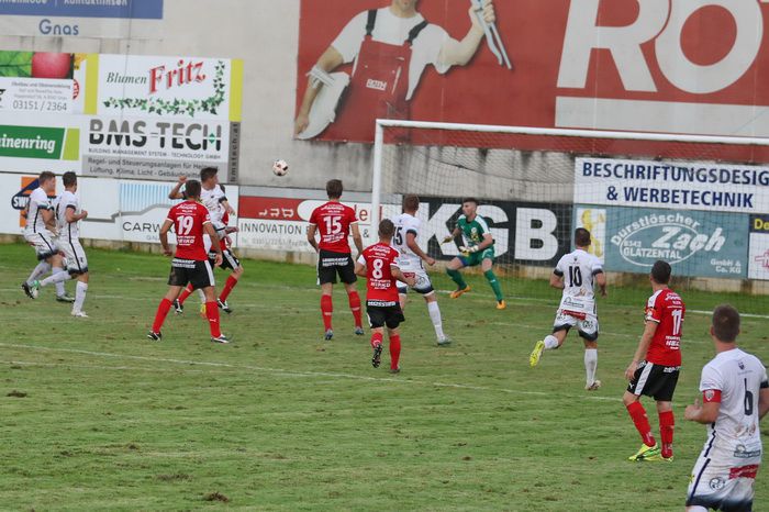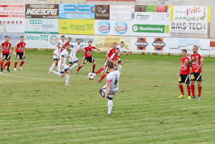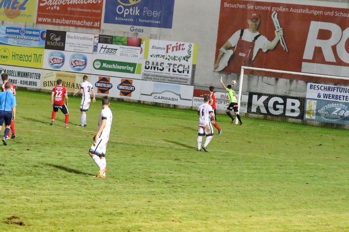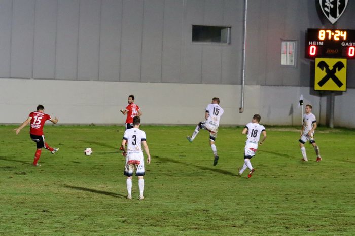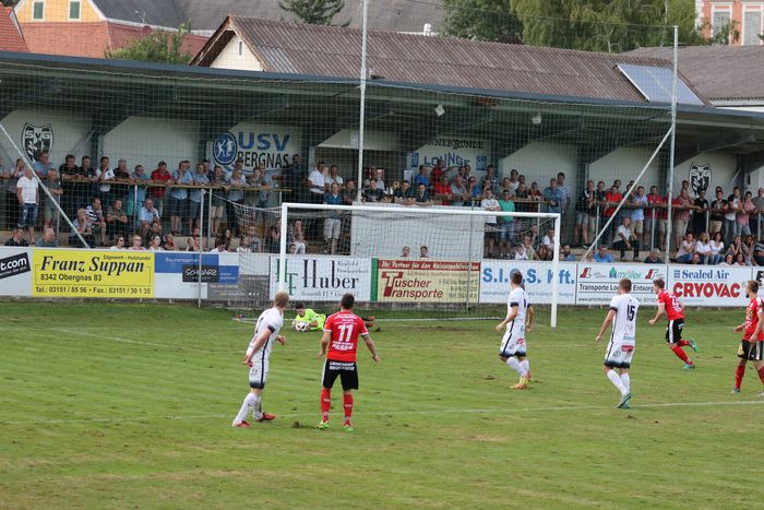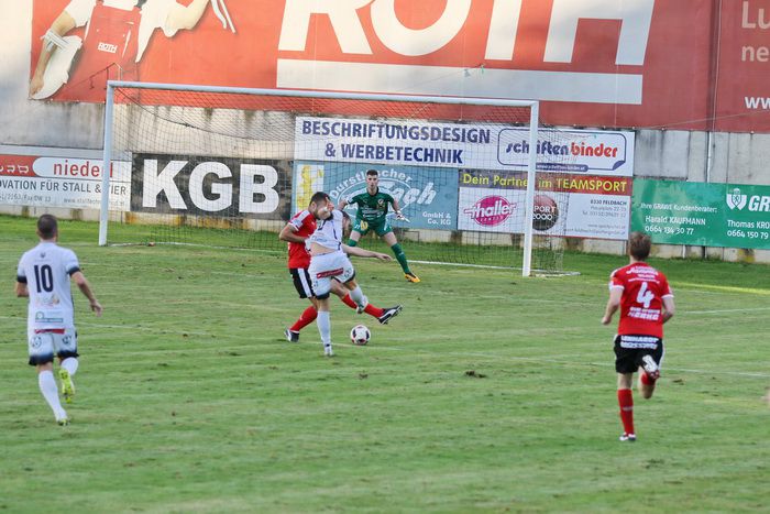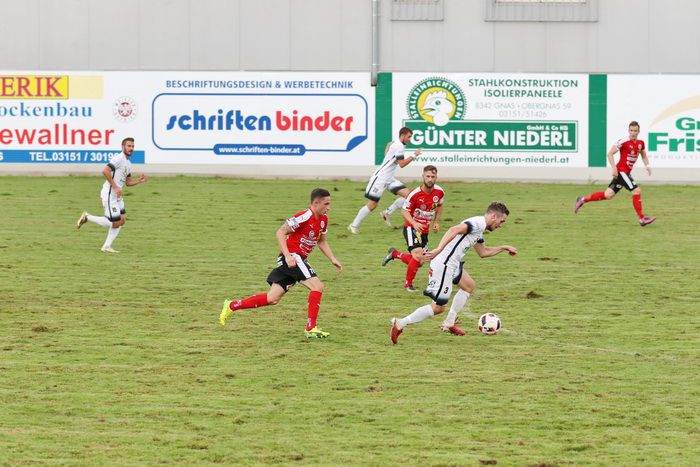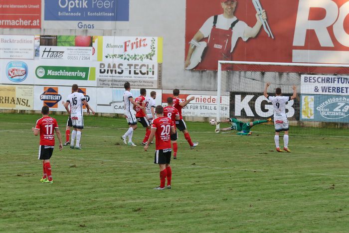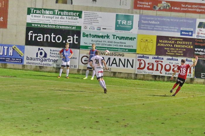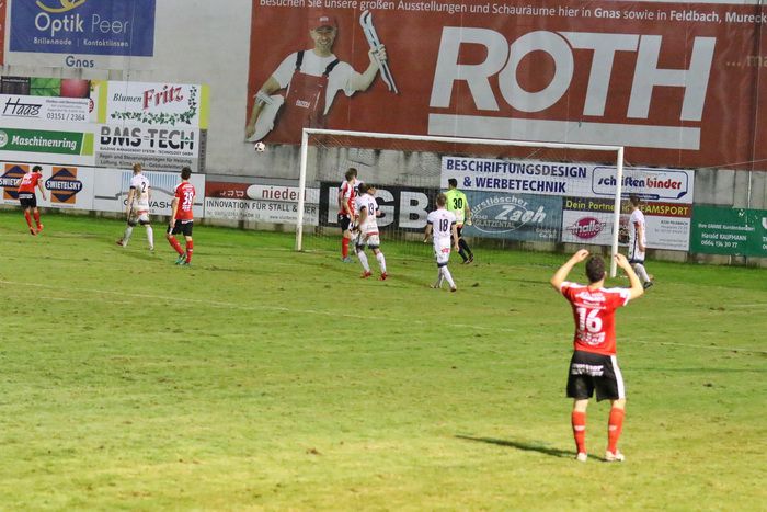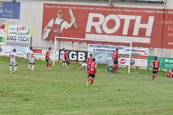 In der 42. Minute gab es Freistoß für Gnas. Matthias Schadler hob den Ball in den Strafraum, Daniel Luttenberger-Haas stieg hoch und köpfelte den Ball ins Netz. Der Jubel war zu früh, denn das Tor wurde wegen Abseitsstellung nicht anerkannt. Pausenstand 0:0.