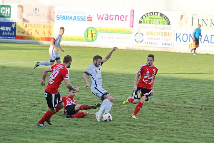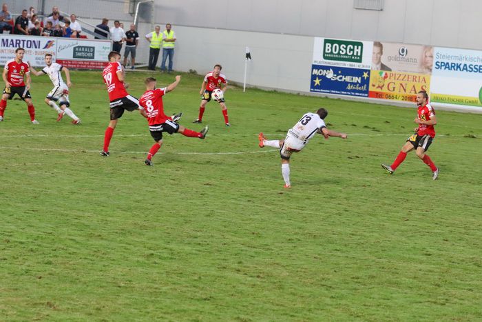 Bei einem Vorstoß der Gnaser über die rechte Seite versuchte Rene Wagist mit einem Schuss aus spitzem Winkel sein Glück, scheiterte aber an der tollen Abwehrreaktion von Goalie Daniel Stoiser (39.).