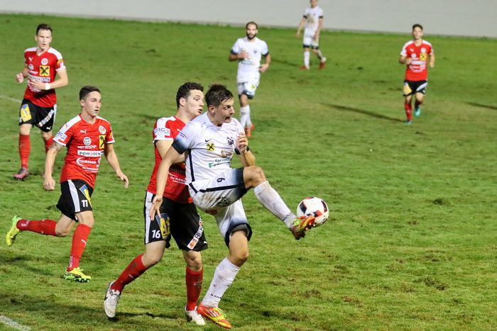 Sein Meisterschaftsdebüt in der Ersten-Mannschaft feierte Philipp Scheucher (am Ball) ab der 74. Minute.