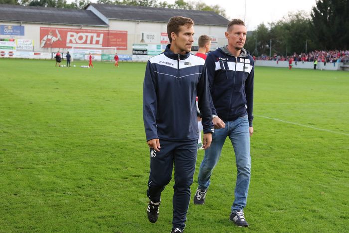 GAK-Trainer Gernot Plassnegger (rechts) auf dem Weg zur Kabine.
