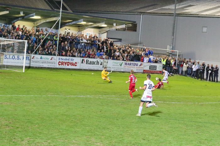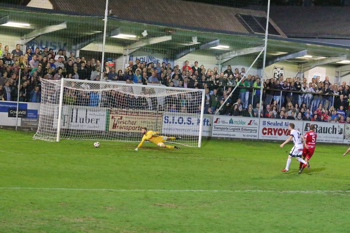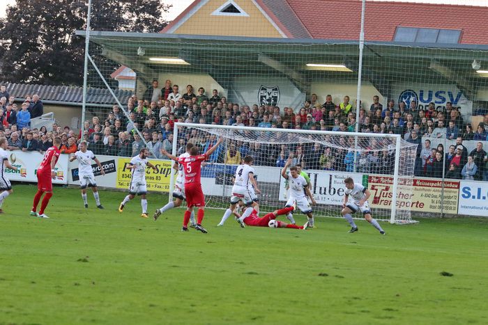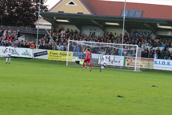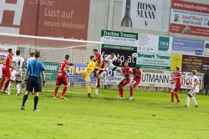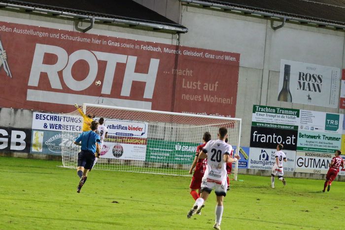Gnas-Tormann Ralf Pripfl wehrt einen Fischer-Schuss ab (72.), der Nachschuss eines anderen Spielers zieht über die Querlatte.