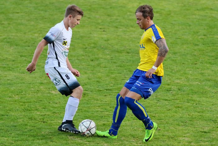 Heiko Wohlmuth setzt mit einem Pass in die Tiefe Philipp Scheucher (nicht am Bild) ein...