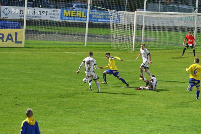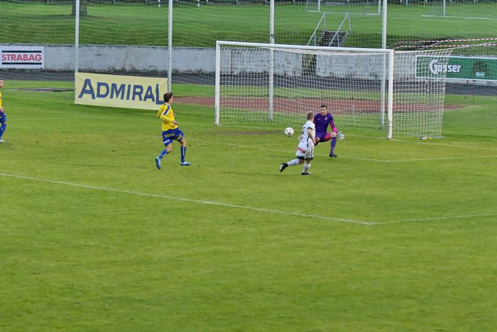 Eine schöne Kombination der Hausherren über die linke Seite führte in der 77. Minute zum 1:0. Mehaj flankte zur Mitte und Andi Schicker schloss die Aktion mit dem Torschuss zum 1:0 ab.