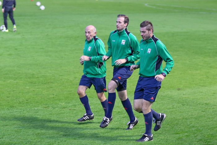Das Schiedsrichterteam um SR Gremsl (mitte).