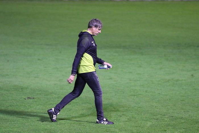 Lebring-Trainer Wolfgang Gassmann auf dem Weg zur Betreuerbank.