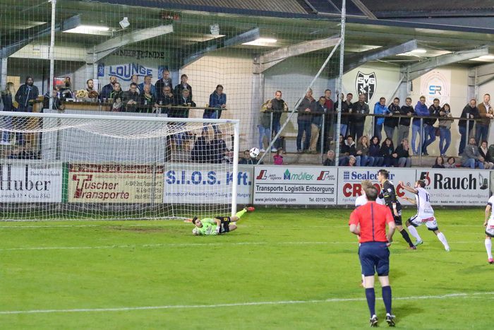 Die Gäste kontern über die linke Seite, Rauter rollt das Leder am langen Eck vorbei (88.).