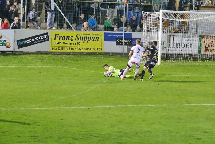 Gnas-Goalie Ralf Pripfl konnte in der 20. Minute das Leder vor dem anstürmenden Mario Kreimer auf der Höhe des Sechzehner noch rechtzeitig wegschießen. Ein Kopfball von David Schnaderbeck verfehlte das Gnaser Tor nur knapp (29.). Wenig später war Ralf Pripfl schneller am Ball als Herbert Rauter (30.).