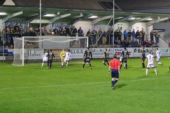 Einen Schadler-Freistoß köpfelt Daniel Luttenberger-Haas bodenauf Richtung Tor...