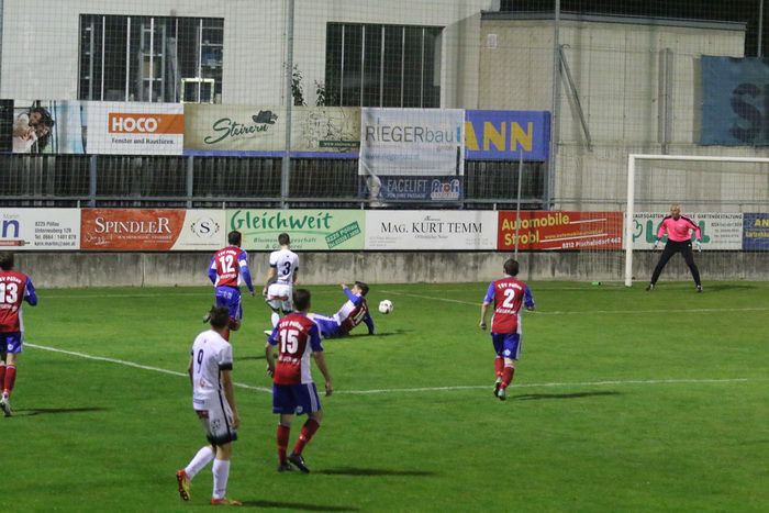 Die einzige Möglichkeit, die die Pöllauer im ersten Spielabschnitt vorfanden, vergab Florian Kernbichler in der 16. Minute, als er nach einem schnellen Konter den Ball links am Tor von Ralf Pripfl vorbei schoss.