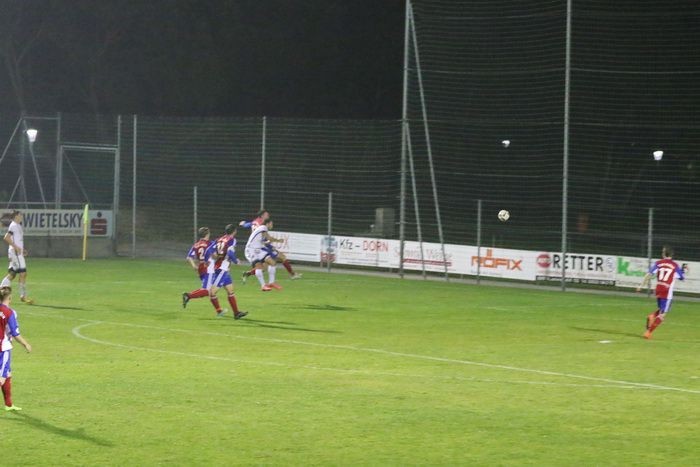Eine Flanke von rechts durch Rene Wagist jagt Daniel Luttenberger-Haas (etwas verdeckt) über die Querlatte (74.).