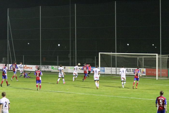 ...den nachfolgenden Eckball von Heiko Wohlmuth köpfelt Benjamin Eder-Halbedl an die Querlatte (77.).