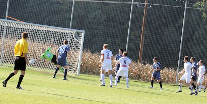 Dann rettete der linke Pfosten die Hausherren vor einem Gegentreffer durch Christian Schadler. Den Nachschuss vergab Daniel Haas.