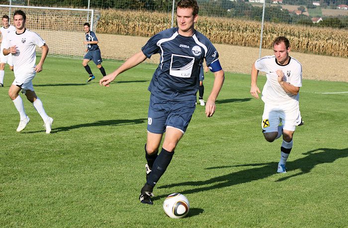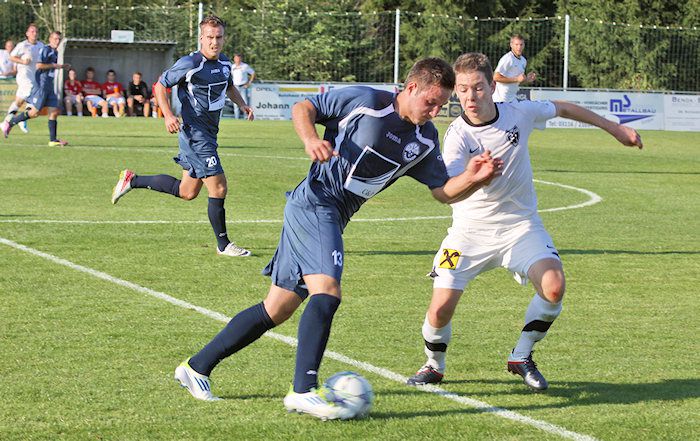 Frannach-Kapitän Markus Haubenwallner wird von Verteidiger Alfred Geigl verfolgt.