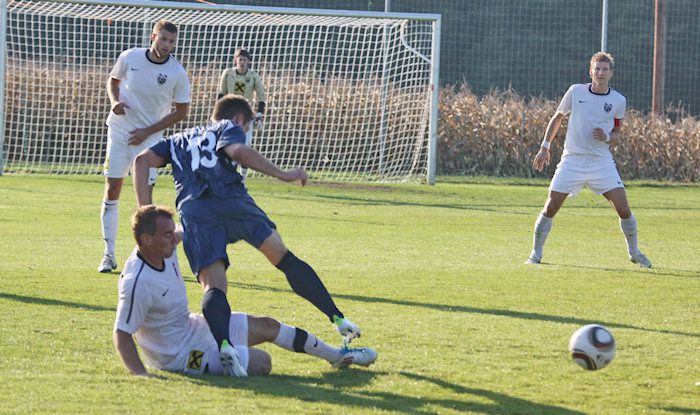 Matthias Winter (Nr.20) verfehlt einen Eckball (58.).