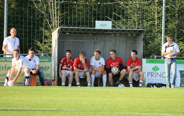 Die Gnaser Betreuerbank mit Trainer Johann Bez (rechts).