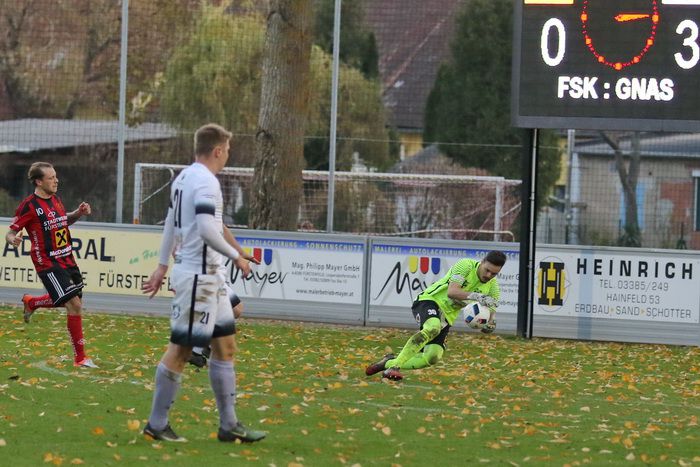 Gleich nach der Pause konnte sich Gnas-Torhüter Ralf Pripfl bei einem Schuss von Bastian Jedliczka nach einem von Michael Goger ausgeführten Freistoß auszeichnen (48.).