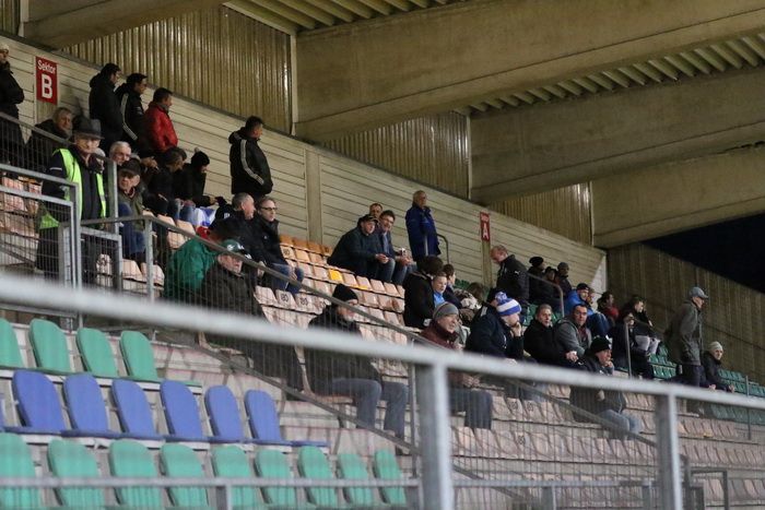 Ein Blick auf die Zuschauertribüne, die spärlich besetzt ist.