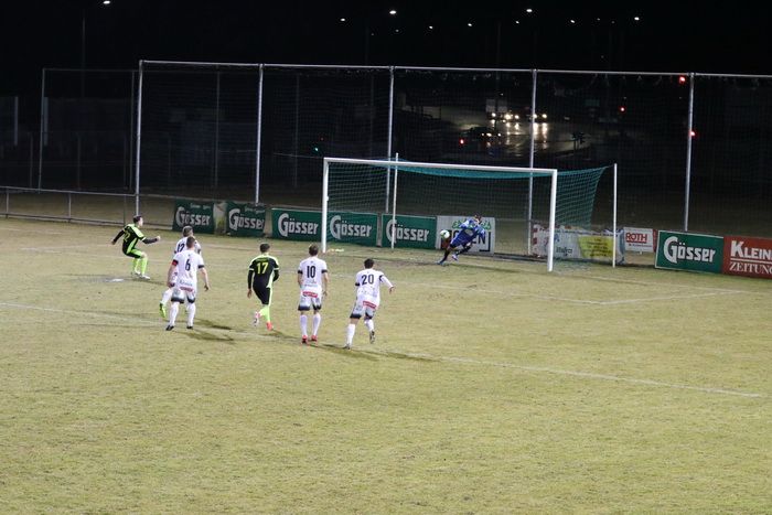 In der 32. Minute konnte Gnas-Torhüter Alex Roth einen Elfer von Kapitän Martin Petkov abwehren. Matthias Waldhuber war zuvor im Gnaser Strafraum gefoult worden. Ein Strohmaier-Schuss verfehlte das Tor der Leobner (35.). Pausenstand 2:0.