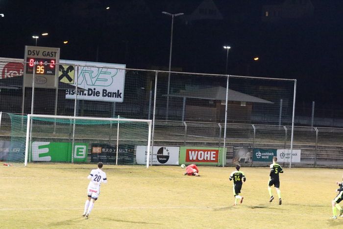 In der 14. Minute war Raphael Kniewallner nach schönem Diagonalpass von Maxi Opferkuch erfolgreich. 2:0 für Gnas nach 14 Minuten. Eine weitere gute Chance ließ Raphael Kniewallner nach Zuspiel von Matthias Schadler aus. Sein Schuss vom Sechzehner wurde eine Beute des DSV-Torhüters Admir Peckovic (24.).