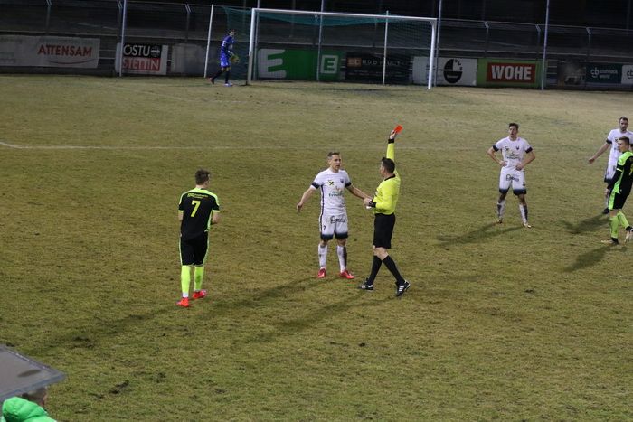 Nach zwei Foulvergehen innerhalb weniger Sekunden zeigt SR Kressl Stefan Klenner zwei Mal die gelbe- und dann die rote Karte (68.).
