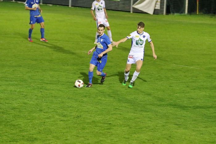 Gnas-Verteidiger Stefan Klenner hatte in der 69. Minute nach einer Flanke von der linken Seite mit einem Stangenschuss Pech.