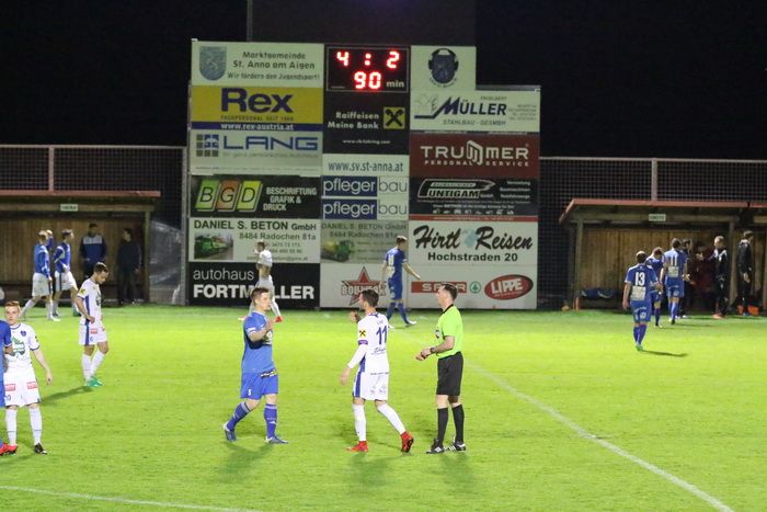 In der 45. Minute erzielte Thomas List nach Vorlage von Marko Guja das 2:1 für die Hausherren. Wenig später konnte Alex Roth einen Kobald-Schuss zur Ecke abwehren. Pausenstand 2:1 für St. Anna/A.