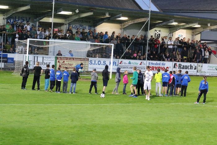 In der Pause wollen über 20 Kinder bei Gnas-Torhüter Alex Roth Elfer schießen.