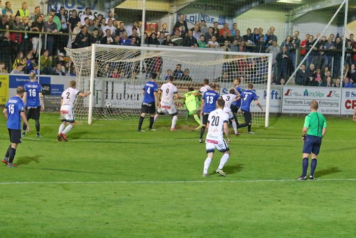 Eine Abwehraktion von Ralf Pripfl nach einer Kozissnik-Flanke aus spitzem Winkel (70.).