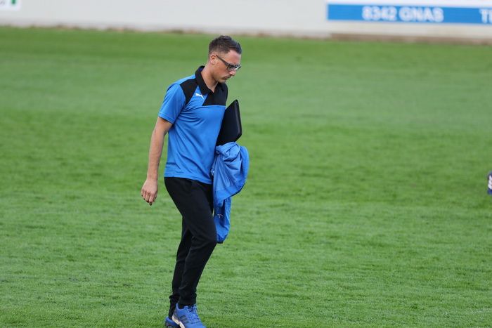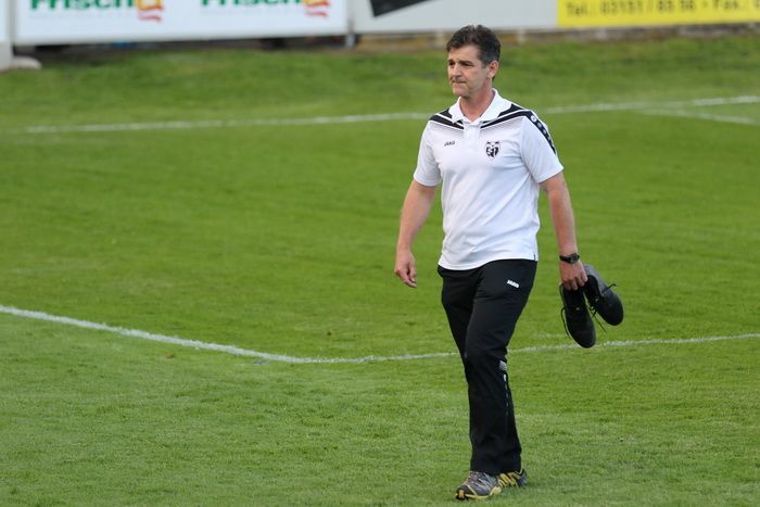 ....und Pöllau-Trainer Roland Spreitzer schreiten zu ihren Betreuerbänken.